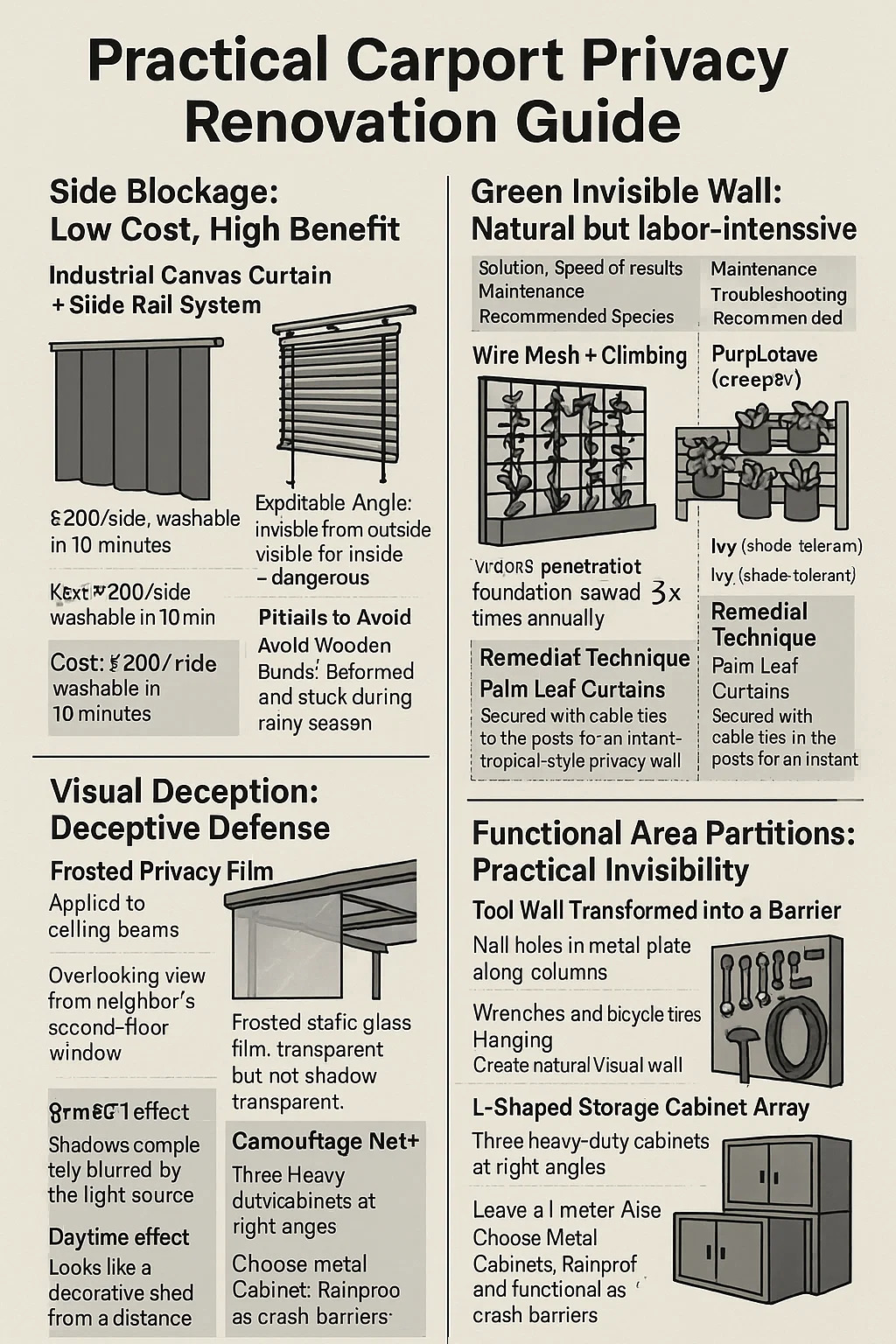 Sistema de rieles deslizantes para cortinas de lona industrial → Riel de aleación de aluminio en la parte superior, pesos de plomo en la parte inferior para protección contra el viento → Clave: elija gris oscuro/camuflaje (los colores claros permiten que se vean las sombras) → Costo: ¥200/lado, lavable en 10 minutos