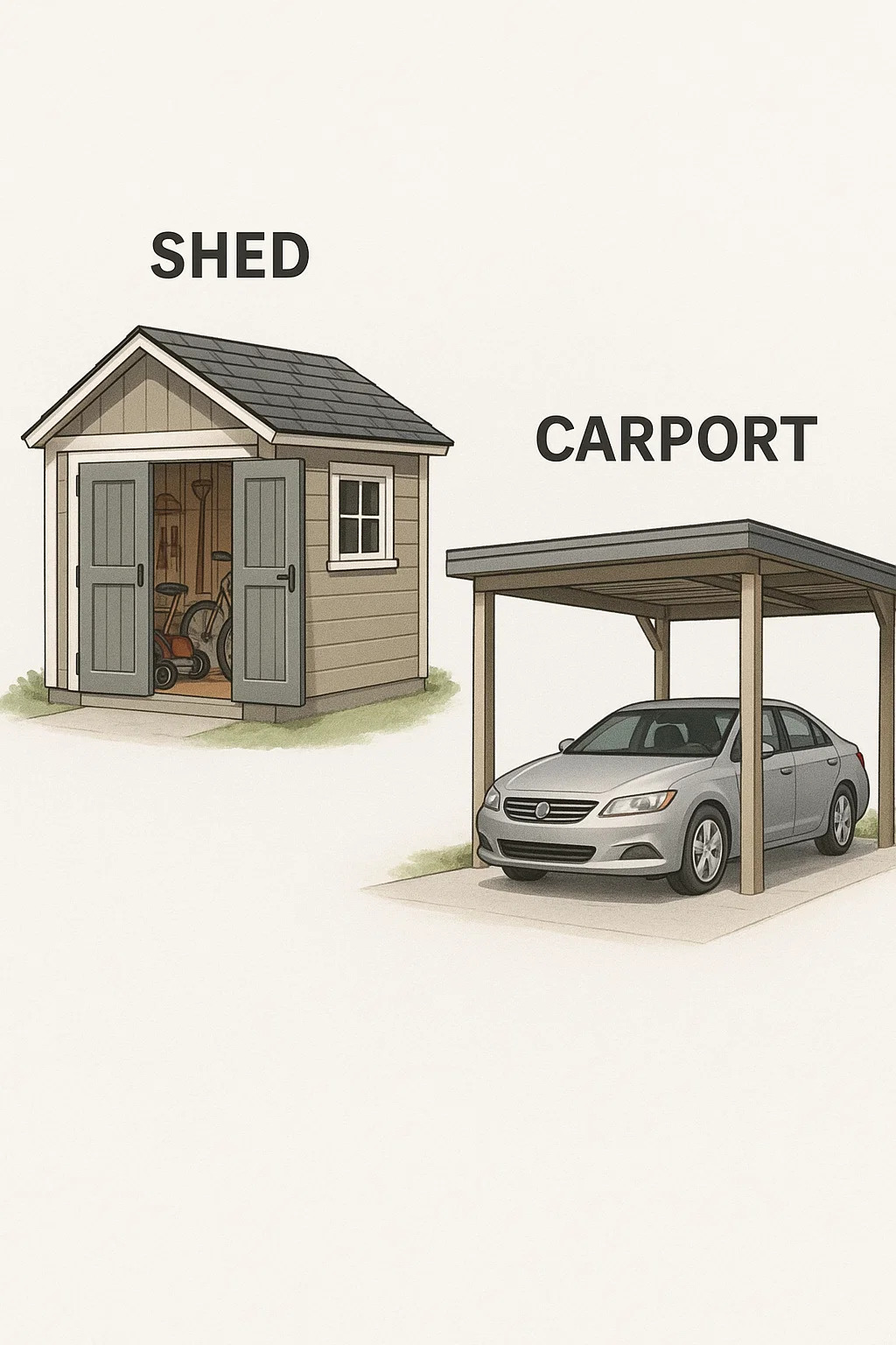Las principales diferencias entre un cobertizo y una cochera radican en su finalidad, estructura y recinto.